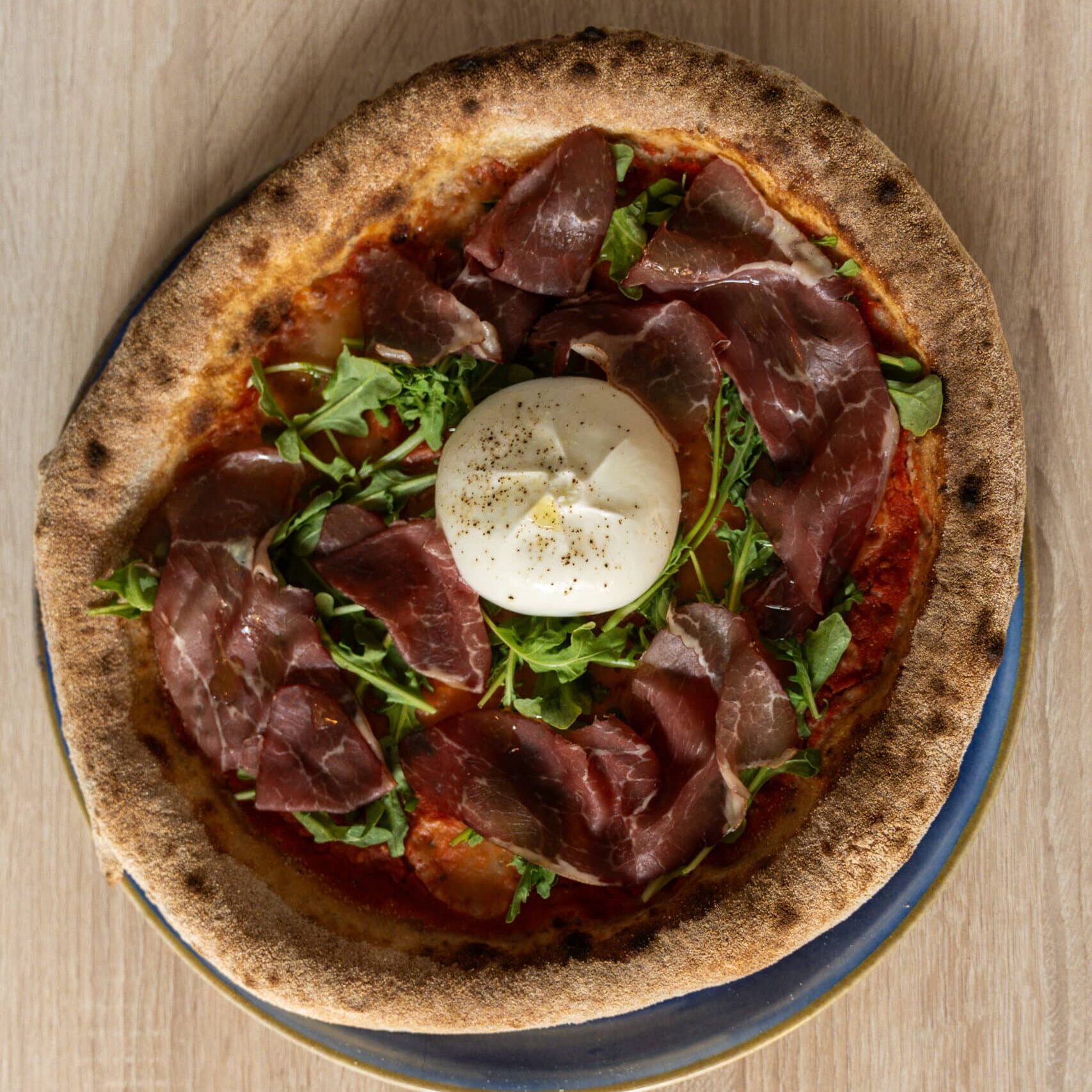 Tomate, mozzarella, bœuf black Angus, Salade, Burrata, Huile d’olive des Pouilles